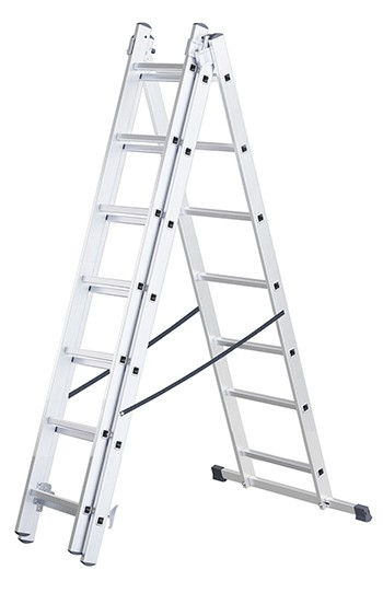 Scara aluminiu 2 tronsoane 2×7 trepte, lungime maxima 2.96 m, certificata TUV-EN131:2018, fabricata in UE